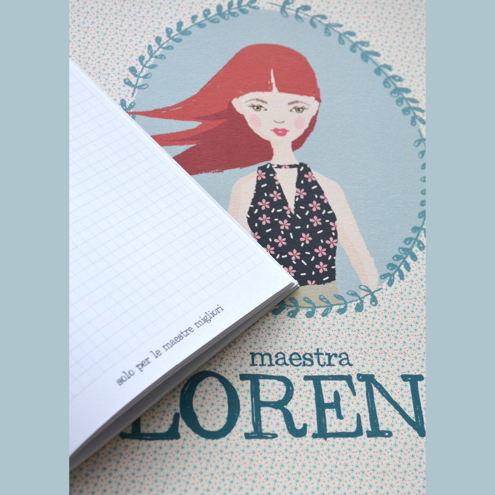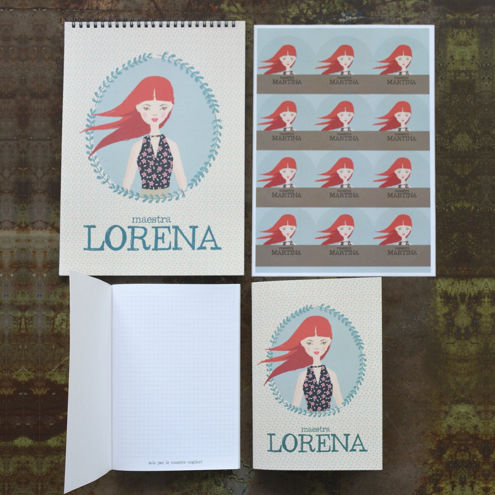 Tutti i prodotti sono personalizzati con il nome della maestra ed un disegno che la ricorda nei tratti