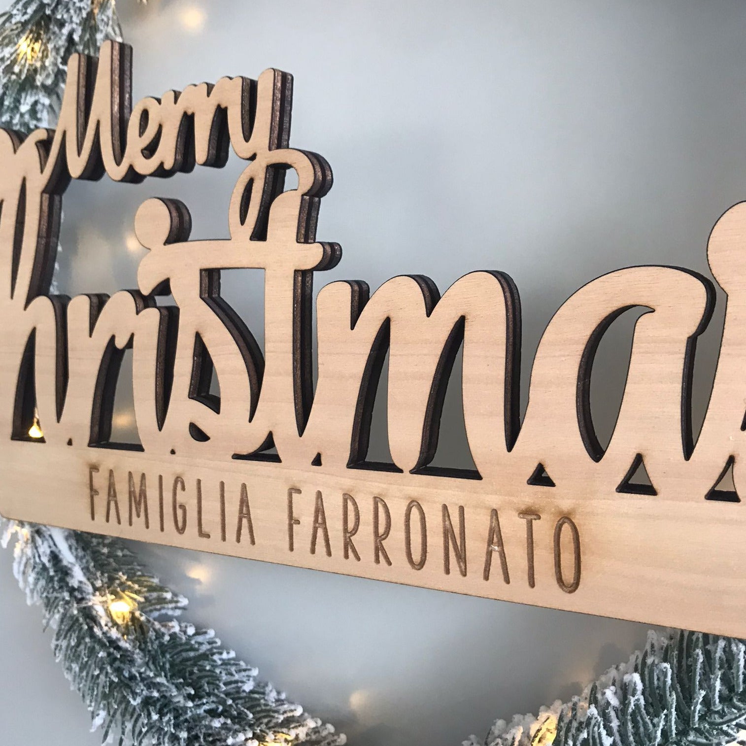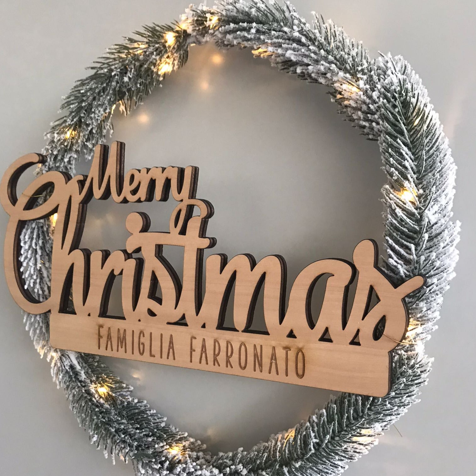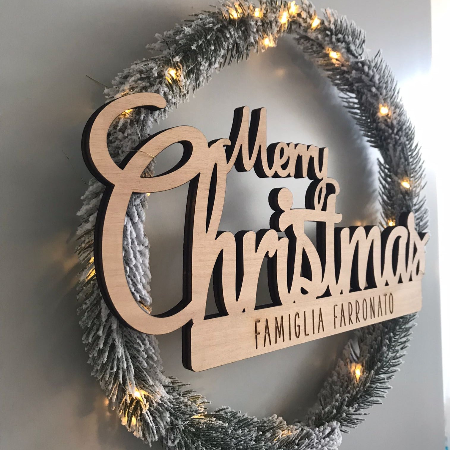 Bellissima "Ghirlanda Fuoriporta" in pino con luci a led e scritta Merry Christmas personalizzabile
