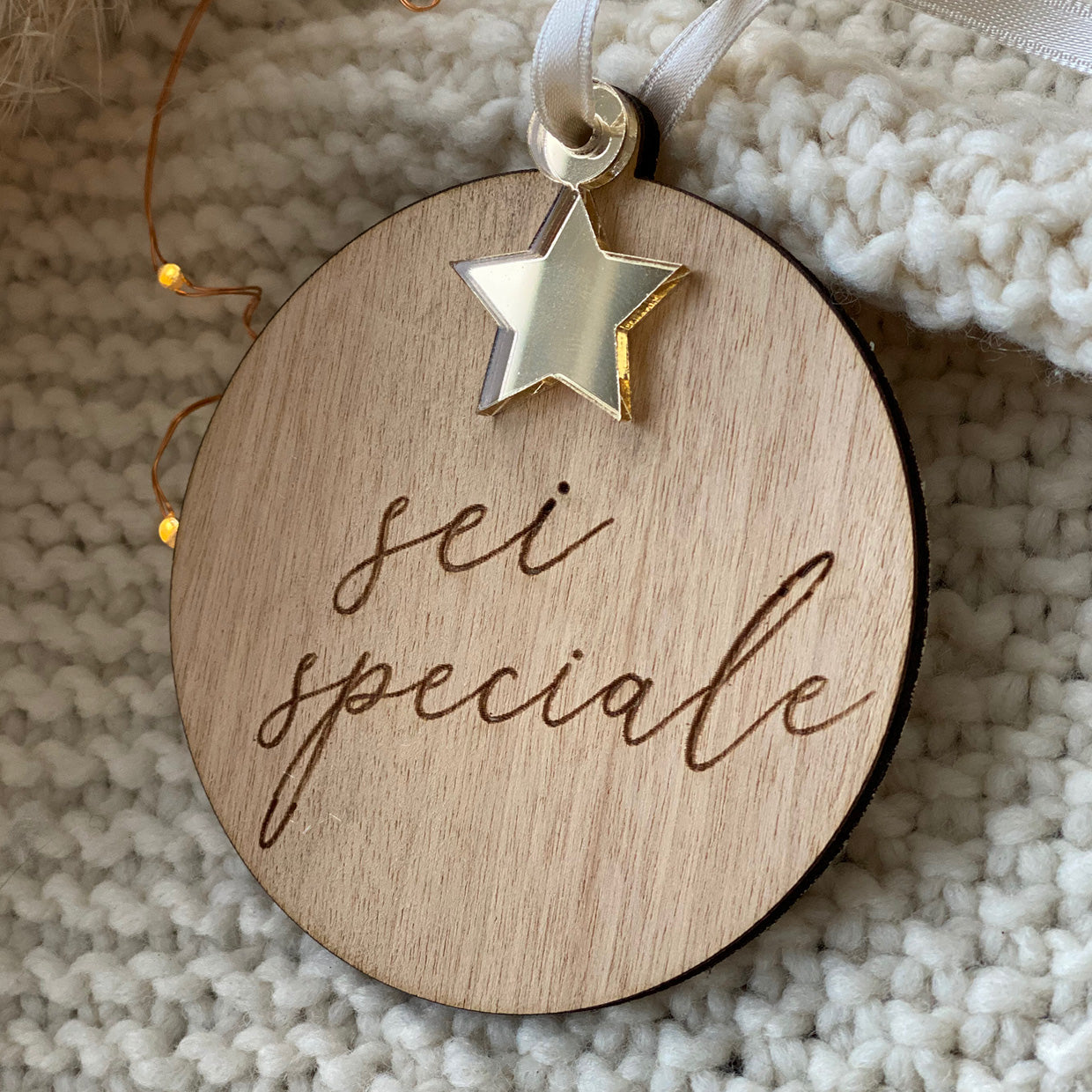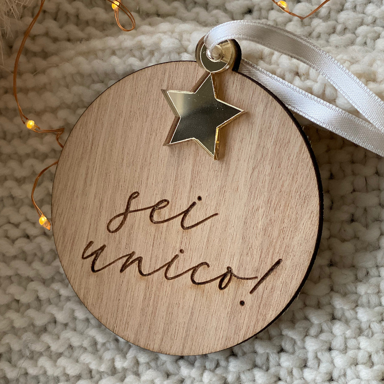 Pallina di natale in legno con Stella in plexiglass oro